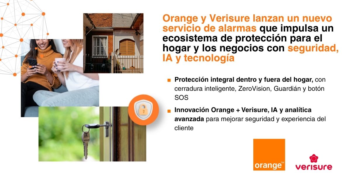 Por su parte, Orange incorpora a su oferta soluciones diseñadas por Verisure para anticiparse a los riesgos, proteger el hogar o el pequeño negocio y cuidar de las personas tanto dentro como fuera de casa.
